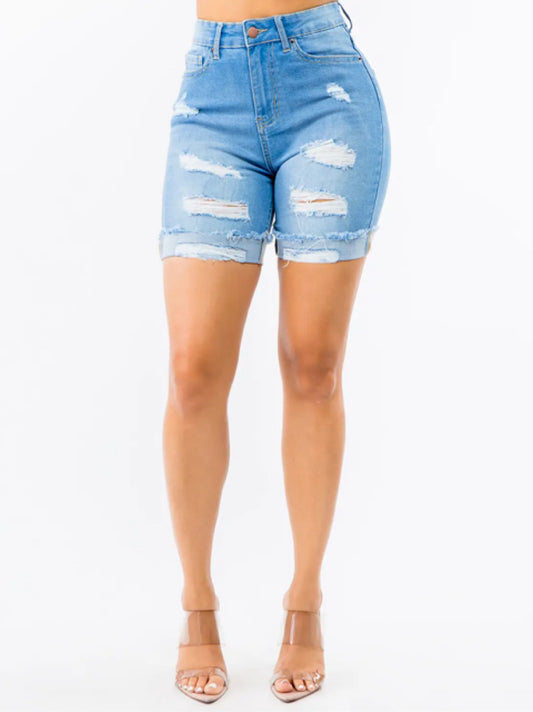 High Waisted Rolled Hem Denim Shorts